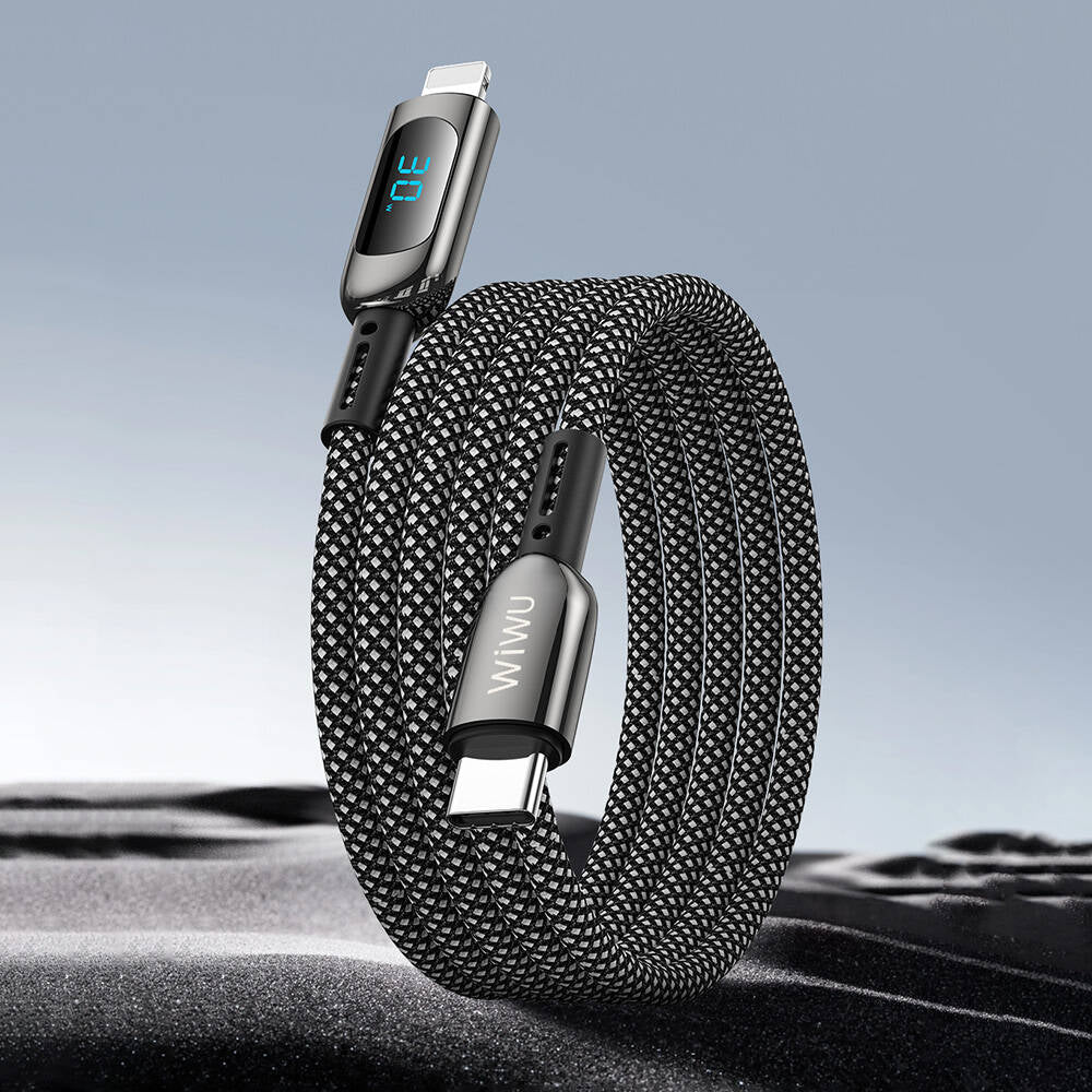 Wiwu Wi-C041 MagQ Çinko Alaşımlı Type-C to Lightning Hızlı Şarj Özellikli Data ve Şarj Kablosu 30W Siyah