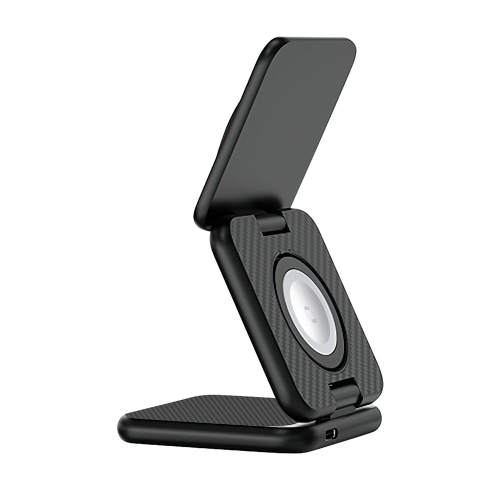 Wiwu Wi-W035 3 in 1 Magnetik Hızlı Şarj Özellikli Aramid Fiber Kablosuz Şarj Standı 15W Siyah