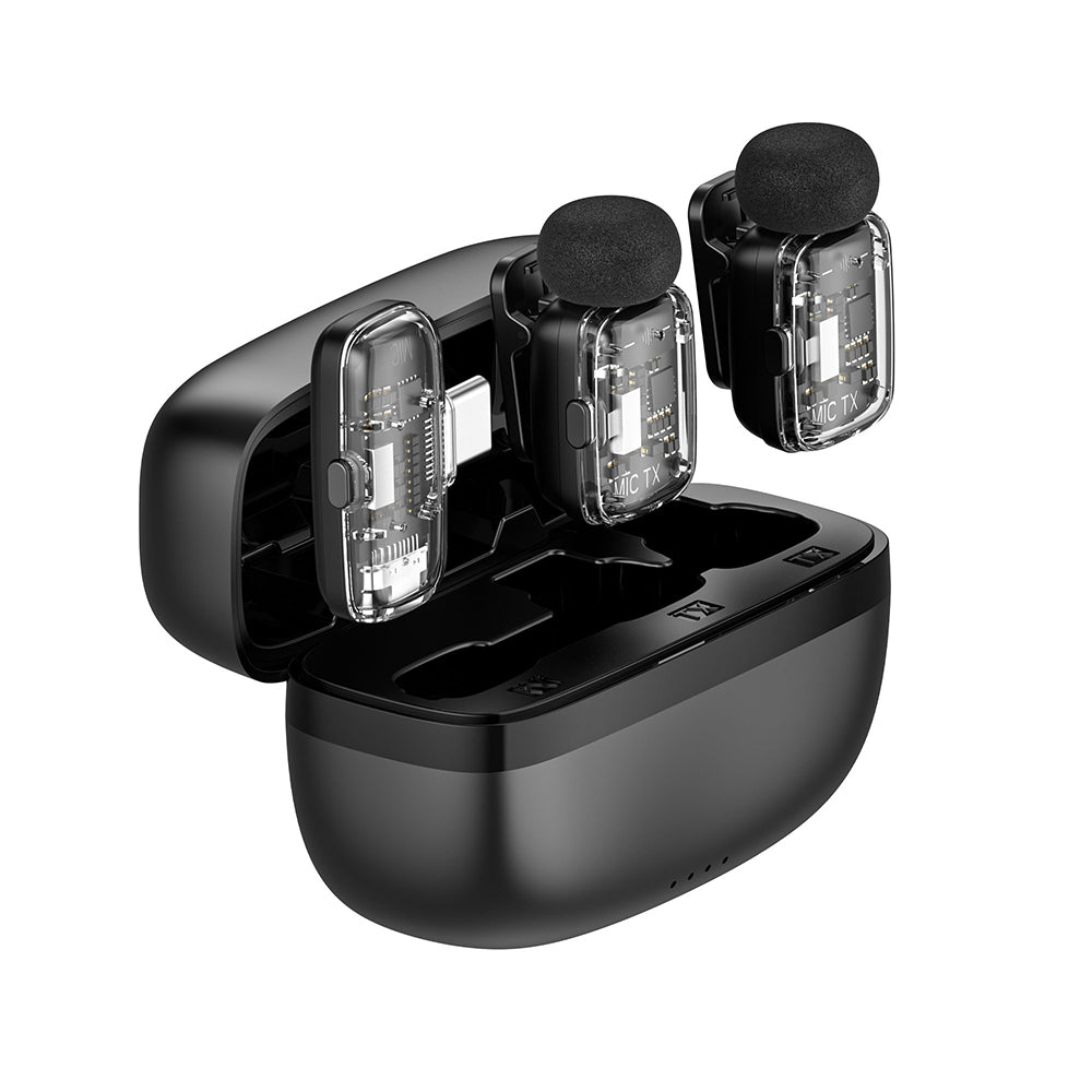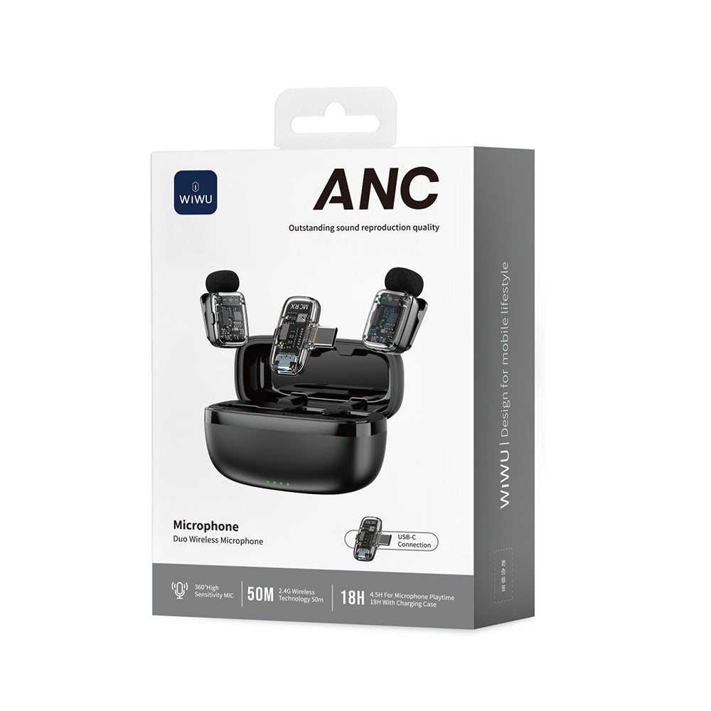 Wiwu Wi-WM008 2in1 Type-C Portlu ANC Özellikli Kablosuz Yaka Mikrofonu Siyah