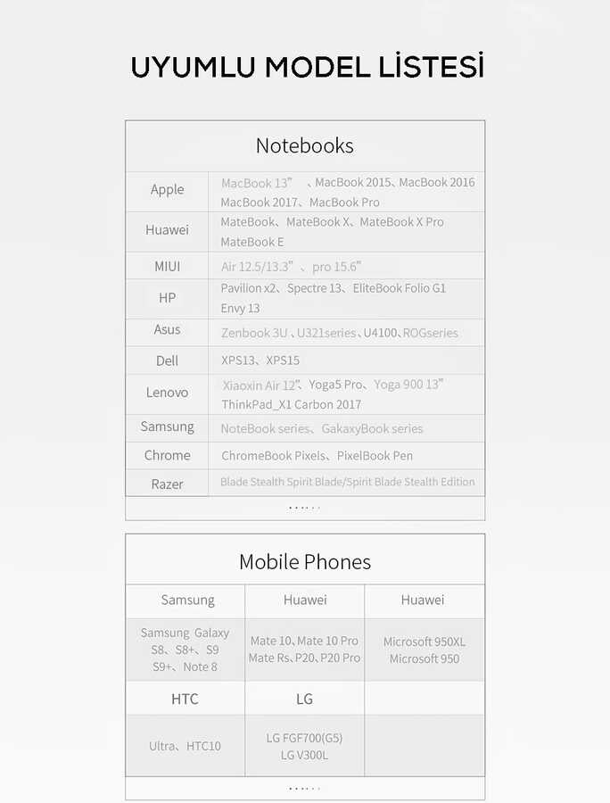 Not : Bu ürün Xiaomi ve Redmi cihazları desteklememektedir.