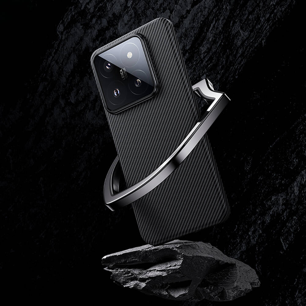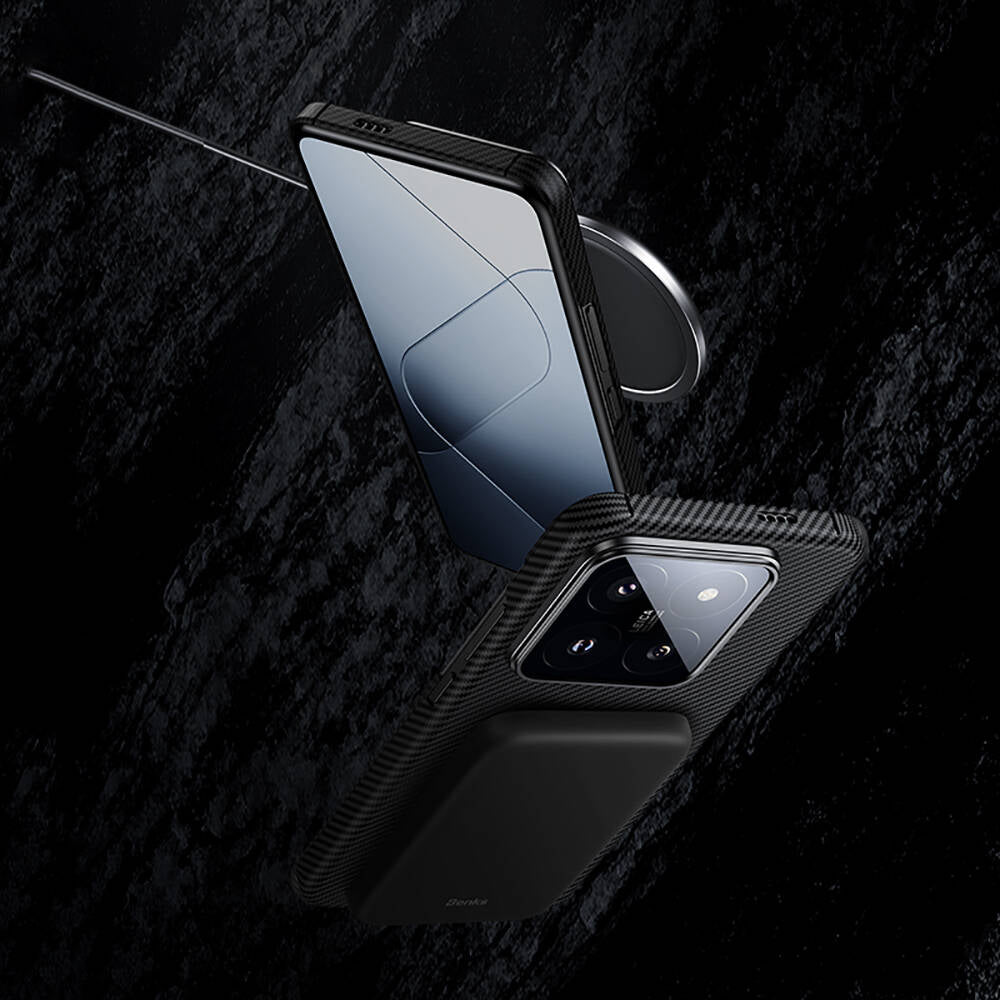 Xiaomi Mi 14 Kılıf M-safe Özellikli Karbon Fiber Benks Essential ArmorAir 600D Kevlar Kapak Siyah