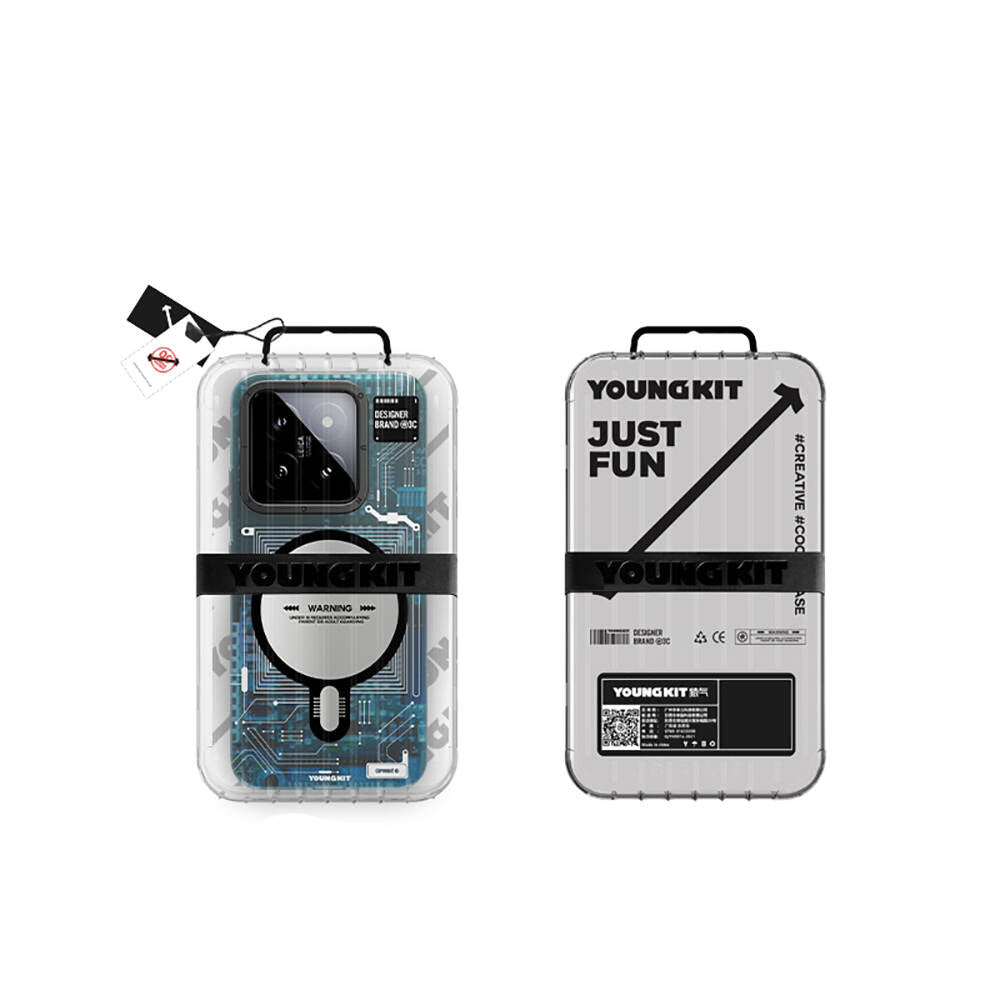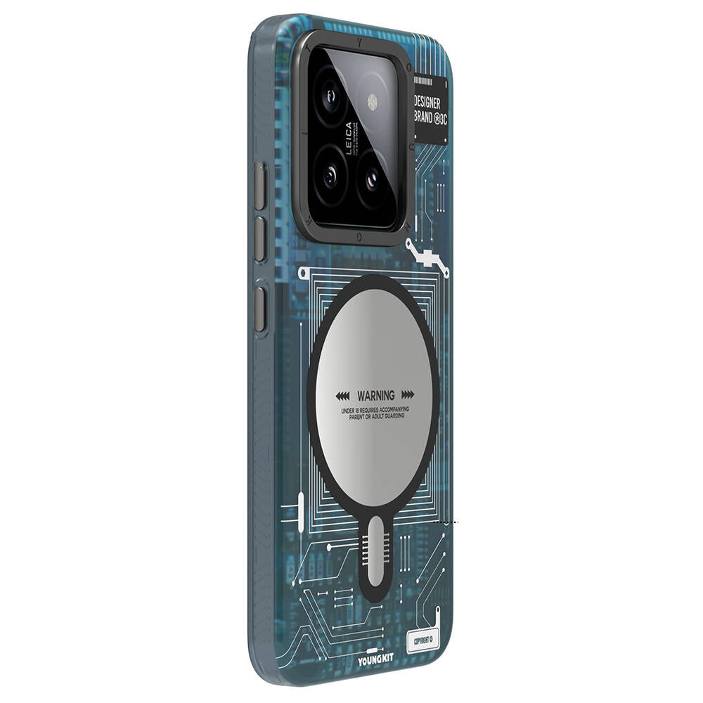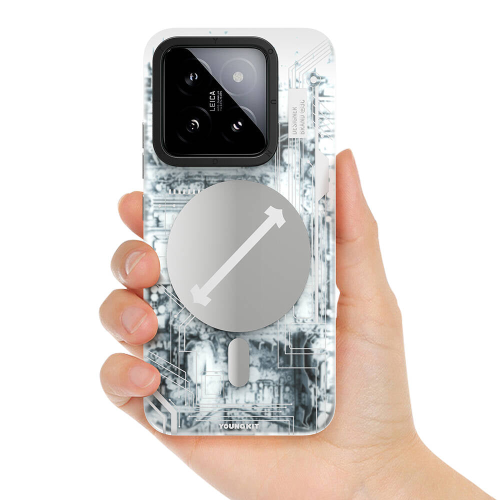 Xiaomi Mi 14 Kılıf M-safe Şarj Özellikli YoungKit Technology Serisi Kapak Beyaz